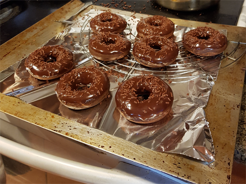 The following are images of donuts I've made in the past, whether actually baked or leavened with yeast and deep fried.